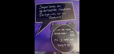 Ieder moment worden spelers totaal verrast door onze kamers en worden ze uitgedaagd in hun eigen creativiteit en fantasie. Deze speurtochten zijn meer dan sloten en puzzels – dit zijn meeslepende avonturen die de realiteit ver achterlaten en ervoor zorgen dat het gehele team samenwerkt om de overwinning tegemoet te treden.. of niet!
